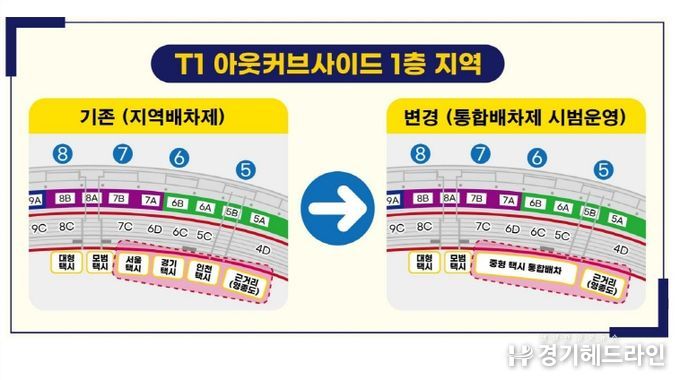 [경기헤드라인=문수철 기자] 인천국제공항공사는 국토교통부, 서울특별시, 인천광역시, 경기도 등과 협의를 거쳐 25일부터 6개월 간 인천공항 제1여객터미널 택시 승차장에서 통합배차제를 시범 운영한다고 밝혔다.