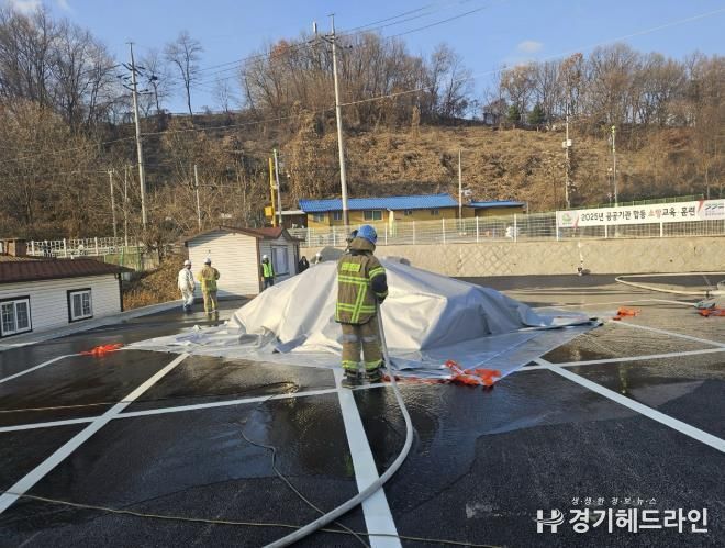 이번 훈련은 자위소방대 편성 및 운영 교육과 전기차 화재 진압 실습 순으로 진행됐으며, 특히 동두천소방서와 함께 전기차 화재 상황을 가정해 질식소화포를 활용한 화재 진압 훈련을 실시했다.