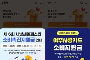 먼저 가평군, 광명시는 통큰 세일 행사 기간인 11월 30일까지 지역화폐 결제 시 결제 금액의 5% 캐시백 혜택을 제공한다. 또 고양시, 남양주시, 수원시, 연천군 등도 통큰 세일 행사 기간을 넘어 다음 달 31일까지 지역화폐 결제 시 5% 캐시백을 제공한다. 특히 수원시는 통큰 세일 기간에 맞춰 진행하는 ‘새빛세일페스타 수원’ 일환으로 기존 5% 캐시백에 더해 10% 추가 캐시백을 지급해 도민들은 수원에서 지역화폐 사용 시 총 15%의 캐시백 혜택을 받을 수 있다.