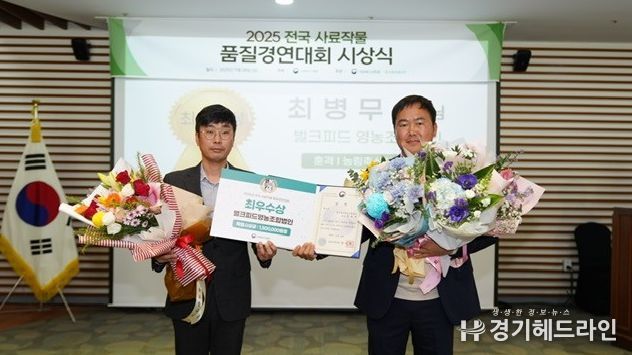 [경기헤드라인=문수철 기자] 경기도는 지난 28일 농림축산식품부 주최로 진행된 ‘2025년 전국 사료작물 품질경연대회’ 시상식에서 이천시 벌크피드영농조합 법인(대표 최병무)이 최우수상을, 안성시 안성축산업협동조합(조합장 정광진)이 우수상을 받았다고 1일 밝혔다.