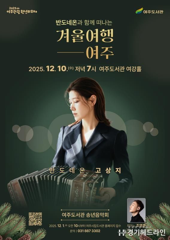 [경기헤드라인=정현수 기자] 여주시 평생교육과 여주도서관은 오는 12월 10일 오후 7시, 여강홀에서 반도네오니스트 고상지와 피아니스트 조영훈이 함께하는 송년음악회를 개최한다.
