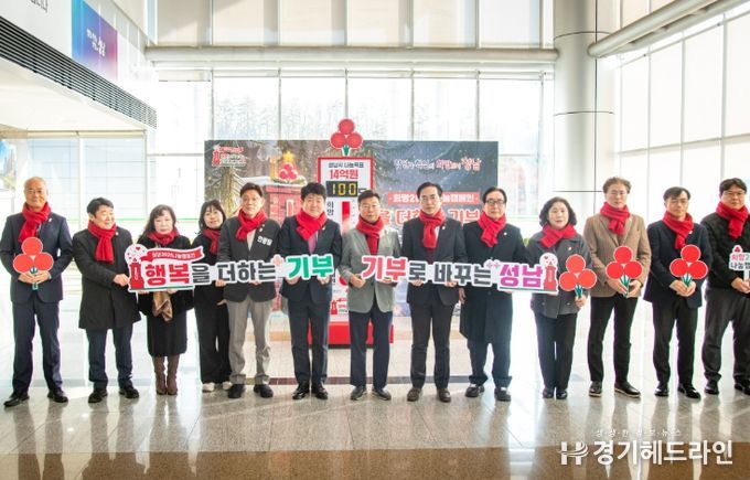 [경기헤드라인=문수철 기자] 성남시의회는 2일 성남시청 1층 누리홀 로비에서 열린‘희망2026 나눔캠페인 사랑의 온도탑 제막식’에 참석했다. 이번 제막식은 겨울철 취약계층을 돕기 위한 연말연시 성금 모금 캠페인의 시작을 알리는 뜻깊은 자리로, 경기도사회복지공동모금회가‘행복을 더하는 기부, 기부로 바꾸는 성남’을 슬로건으로 진행한다.