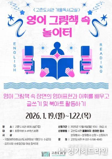 [경기헤드라인=문수철 기자] 김포시 고촌도서관은 오는 2026년 1월 19일부터 1월 22일까지 초등학생 3~4학년을 대상으로 겨울독서교실 '영어 그림책 속 놀이터'를 운영한다.