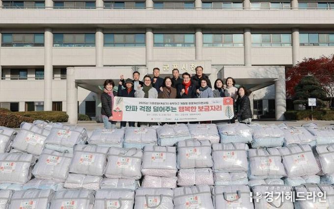 [경기헤드라인=문수철 기자] 군포시와 군포시지역사회보장협의체는 사회복지공동모금회와 함께 ‘2025년 기후변화(혹한기) 취약가정 계절별 환경개선 지원사업’을 추진하여 본격적인 추위가 시작되기 전에 취약한 가구의 겨울나기를 돕기 위해 저소득 취약가구 250가구에게 겨울 이불세트를 전달 했다.