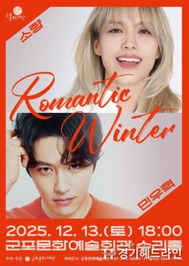 [경기헤드라인=문수철 기자] 군포문화재단은 오는 12월 13일 오후 6시, 군포문화예술회관 수리홀에서 연말 기획공연 “소향×민우혁 콘서트 'Romantic Winter'”를 개최한다.