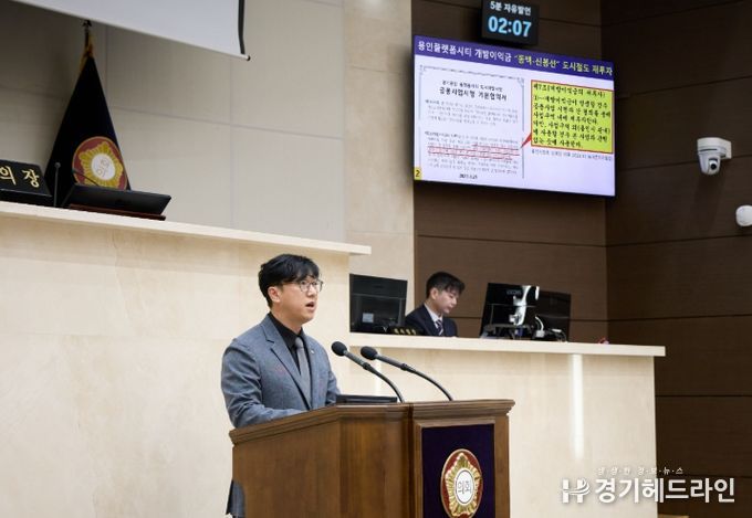 [경기헤드라인=문수철 기자] 용인특례시의회 김병민 의원(구성동,마북동,동백1동,동백2동/더불어민주당)은 16일 열린 제298회 임시회 제1차 본회의에서 5분 자유발언을 통해 ‘제2차 경기도 도시철도망 구축계획’에 반영된 동백–신봉선 철도망의 원활한 추진을 위한 정책적 대응과 선제적 준비를 강력히 촉구했다.