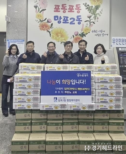 [경기헤드라인=문수철 기자] 수원시 영통구 망포2동에 위치한 두란노교회는 지난 16일, 지역 내 취약계층을 돕기 위해 김치 28박스와 햇반 40박스를 망포2동 행정복지센터에 기탁했다.