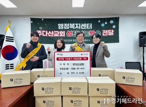 [경기헤드라인=문수철 기자] 오산시 세마동 행정복지센터는 지난 16일 주다산교회가 겨울철 어려움을 겪고 있는 이웃들을 돕기 위해 생필품 세트 40개를 기탁했다고 밝혔다.
