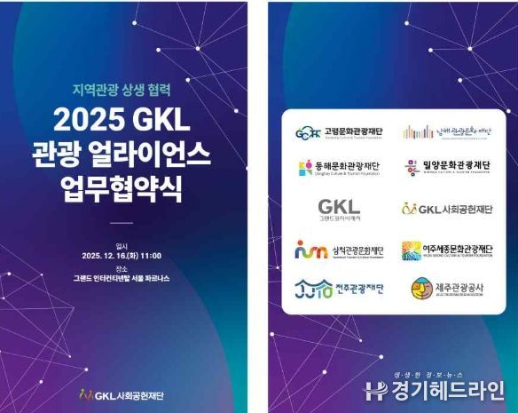 [경기헤드라인=정현수 기자] 여주세종문화관광재단은 지난 12월 16일 GKL 사회공헌재단이 주관한 ‘GKL 관광 얼라이언스 업무협약식’에 참석하여, 전국 8개 지역관광 전담기관과 함께 문화·관광 분야 공익사업 협력을 위한 업무협약을 체결했다고 밝혔다.