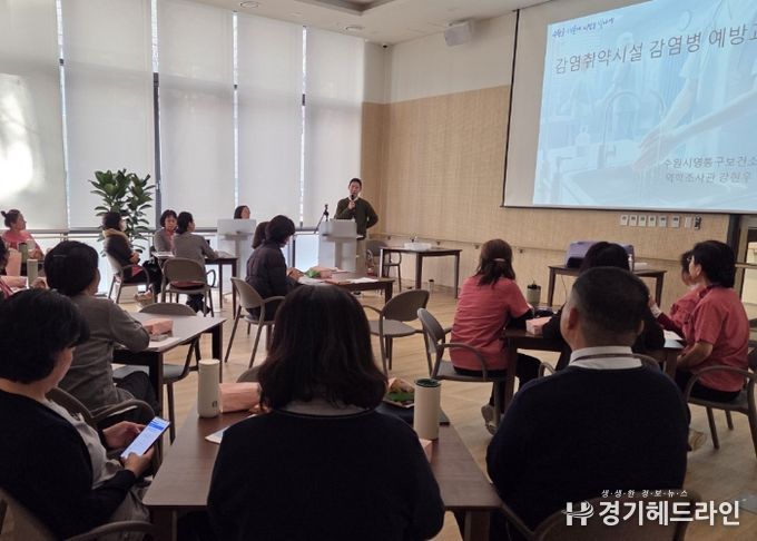 [경기헤드라인=문수철 기자] 영통구보건소가 18일 어르신 요양시설 ‘KB골든라이프케이 광교빌리지’를 방문해 현장맞춤형 예방간담회를 열었다.