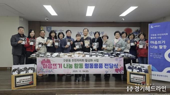 [경기헤드라인=문수철 기자] 지난 19일, 권선구 구운동 주민자치회가 주민자치회 활성화 사업 일환으로 추진한 ‘마음 뜨기 나눔 활동’을 통해 만든 목도리 400여 개를 구운동 행정복지센터에 전달했다.
