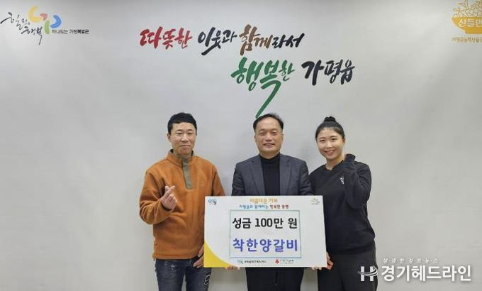 [경기헤드라인=문수철 기자] 가평군 가평읍 경춘로 소재 착한양갈비는 지난 19일 행정복지센터를 방문해 이웃돕기 성금 100만 원을 기탁했다.