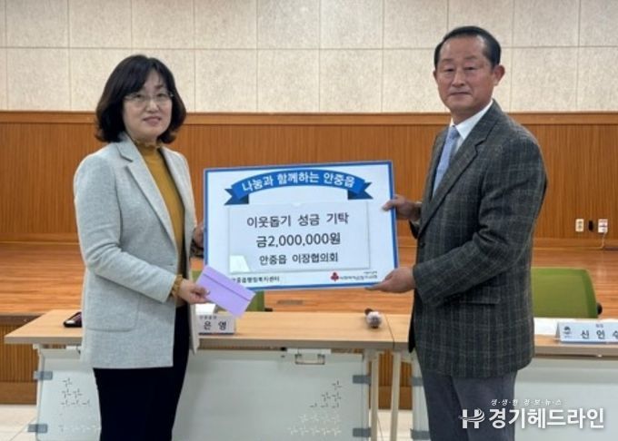 [경기헤드라인=문수철 기자] 평택시 안중읍 이장협의회는 지난 16일 연말을 맞아 지역 내 소외된 이웃을 돕기 위한 성금 200만 원을 안중읍 행정복지센터에 기부했다.
