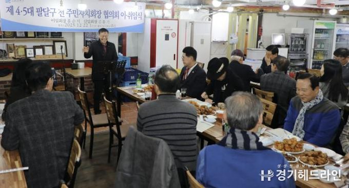 [경기헤드라인=문수철 기자] 수원시 팔달구는 지난 12월 22일, 관내 식당에서 전 주민자치회장, 관계 공무원 등 20여 명이 참석한 가운데 前 주민자치회장협의회 회장 이‧취임식을 개최했다고 밝혔다.