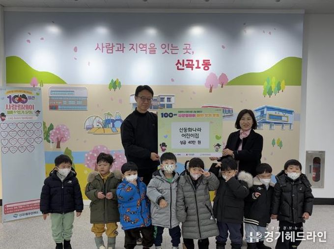 [경기헤드라인=문수철 기자] 의정부시 신곡1동주민센터는 12월 22일 신동화나라 어린이집이 연말을 맞아 성금 40만 원을 기부했다고 밝혔다.