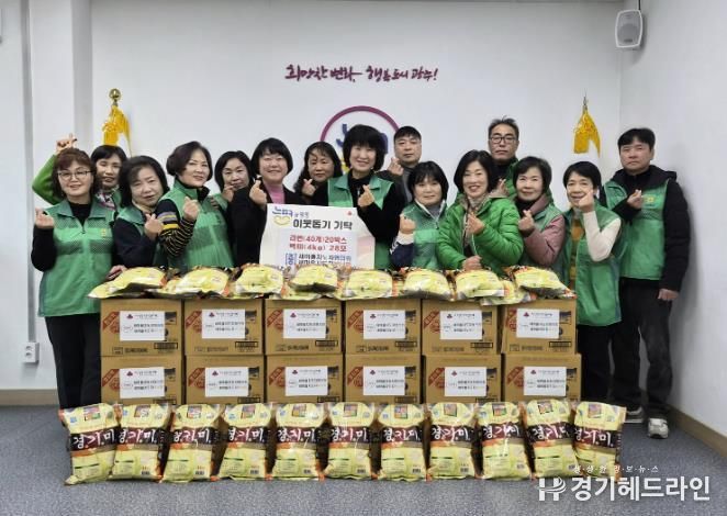 [경기헤드라인=정현수 기자] 광주시 능평동 새마을지도자협의회·부녀회는 23일 능평동 행정복지센터에서 취약계층을 위한 ‘이웃돕기 백미·라면 나눔’ 기탁식을 개최했다.