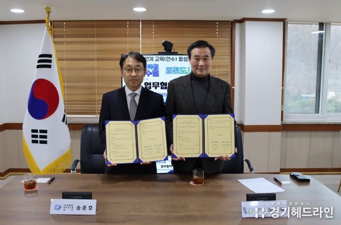 [경기헤드라인=문수철 기자] 경기도교육청북부연수원이 23일 포천도시공사와 ‘교육 협력 및 인적·물적 자원 상호 지원을 위한 업무협약(MOU)'을 체결했다.