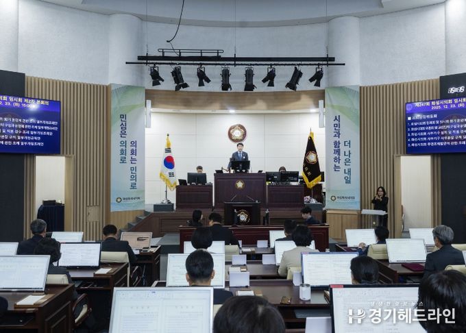 [경기헤드라인=문수철 기자] 화성특례시의회는 23일 오후 3시, 의회 본회의장에서 제247회 임시회 제2차 본회의를 개의하고 5분발언을 청취한 후, 각 상임위원회 조례 안건 및 예산결산특별위원회 심사 안건 등을 심의·의결했다.