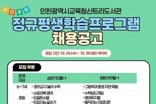 교육 신청은 인천시 통합예약시스템 누리집에서 선착순으로 회차당 10명을 모집하며, 1차 신청은 2025년 12월 29일 오전 10시, 2차 신청은 2026년 1월 5일 오전 10시부터 접수한다.
