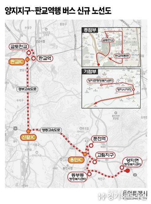 [경기헤드라인=문수철 기자] 용인 양지지구를 출발해 고림동과 둔전역을 거쳐 성남 판교역까지 운행하는 버스 노선이 확정됐다.