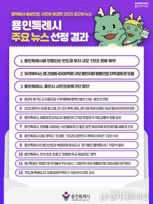 'SK하이닉스 팹 건설에 4500억 원 규모 용인 지역자원 활용’과 '용인시 시민프로축구단 창단'이 각각 2위, 3위를 차지했다.