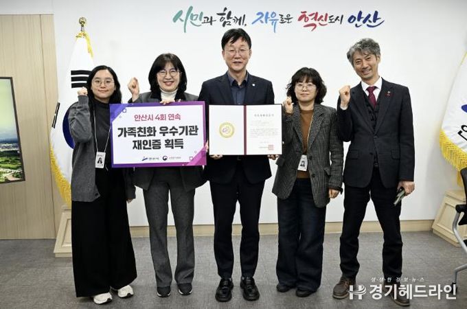 [경기헤드라인=문수철 기자] 안산시는 올해 성평등가족부가 선정하는 ‘가족친화 우수기관 재인증’을 4회 연속 획득했다고 29일 밝혔다.