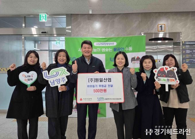 [경기헤드라인=문수철 기자] 남양주시는 29일 수동면 소재 ㈜원일산업에서 지역 내 어려운 이웃을 위한 후원금 500만 원을 경기사회복지공동모금회를 통해 수동면 지역사회보장협의체에 지정 기탁했다고 밝혔다.