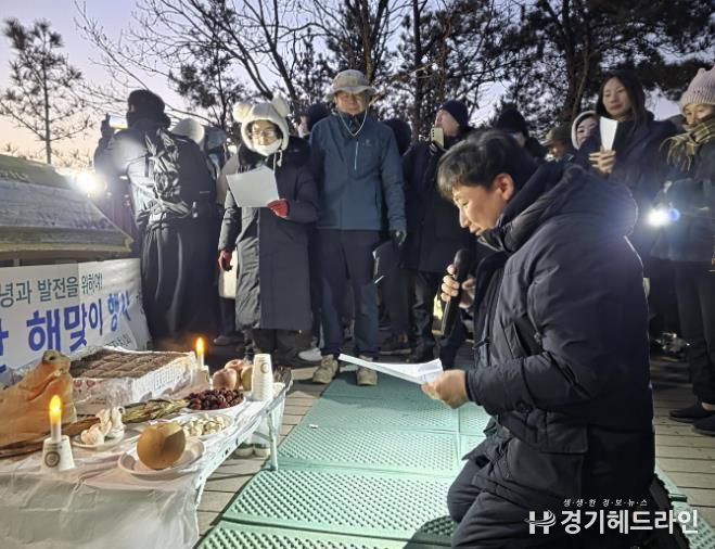 [경기헤드라인=문수철 기자] 권선구 금곡동 주민자치회는 2026년 병오년을 맞아 1월 1일에 칠보산 정상의 파노라마 전망대에서 지역의 주요 인사와 주민 등 100여 명이 모여 해맞이 행사를 개최했다.