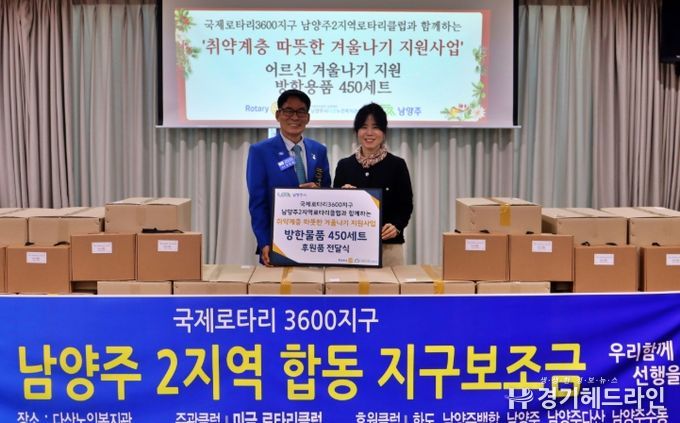 [경기헤드라인=문수철 기자] 남양주시는 지난 5일 다산노인복지관이 국제로타리 3600지구 남양주 2지역 로타리클럽과 함께 겨울철 한파에 취약한 취약계층을 위한 후원물품 전달식을 개최했다고 밝혔다.