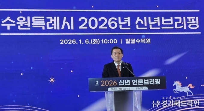 6일 일월수목원에서 열린 신년 기자회견에서 이재준 수원특례시장은 “시민의 말씀이 수원의 미래가 됩니다”라며 시민 참여의 중요성을 강조했다.