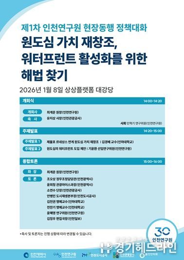 [경기헤드라인=문수철 기자] 인천연구원은 인천학회와 함께 1월 8일 제물포 상상플랫폼에서 정책 세미나를 공동 주최한다.