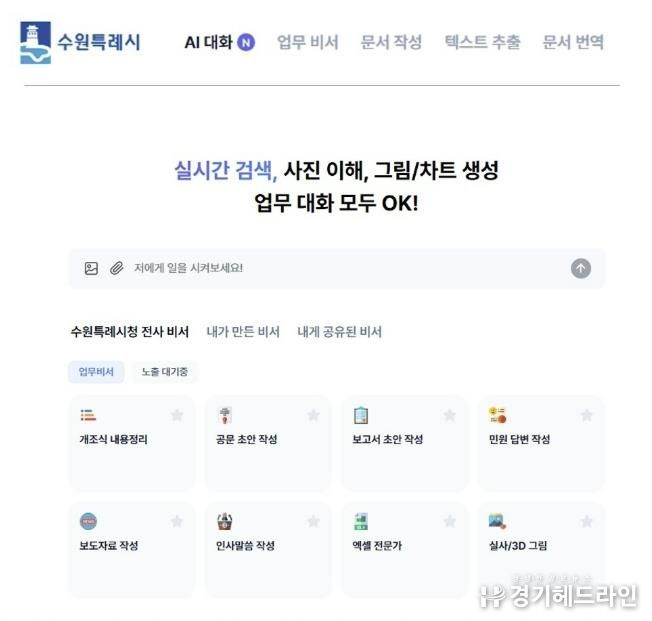 [경기헤드라인=문수철 기자] 수원특례시가 생성형 인공지능(AI)을 행정 전반에 활용하기 위해 12일 공직자를 대상으로 ‘수원 인공지능(AI) 업무 비서’ 서비스를 개시했다.