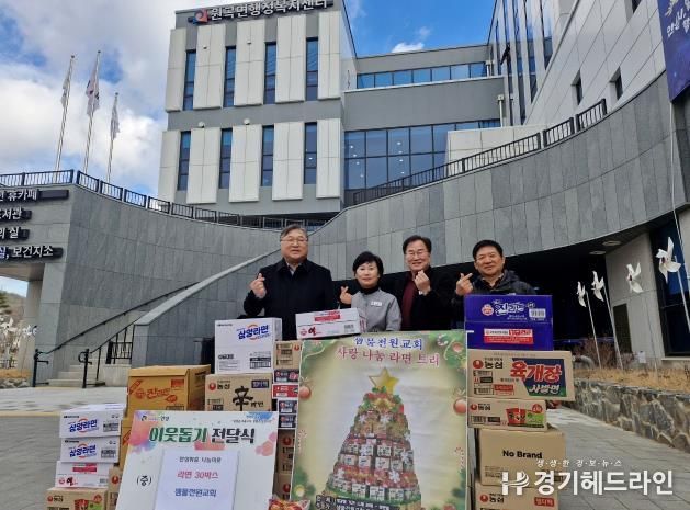 [경기헤드라인=문수철 기자] 샘물전원교회는 지난 1월 9일 원곡면행정복지센터를 방문해 지역 내 어려운 이웃을 위해 써 달라며 라면 30박스를 기탁했다.