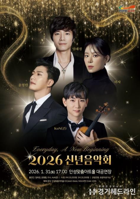 [경기헤드라인=문수철 기자] 안성맞춤아트홀이 2026년 새해의 문을 여는 첫 기획공연 ‘2026 신년음악회’를 오는 1월 31일 오후 5시, 안성맞춤아트홀 대공연장에서 선보인다.