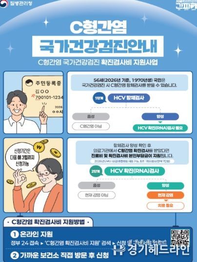 [경기헤드라인=김홍량 기자] 고양특례시 일산서구보건소는 질병관리청의 C형간염 관리 강화 방침에 따라, 2026년부터 국가건강검진 C형간염 항체 양성자에 대한 ‘확진검사비 지원 사업’이 종합병원 및 상급종합병원까지 확대 시행된다고 밝혔다.
