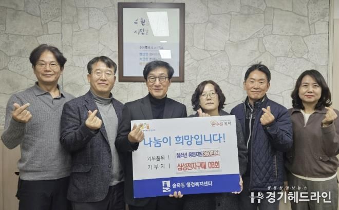 [경기헤드라인=문수철 기자] 수원시 장안구 송죽동은 지난 15일 삼성전자 구매OB회와 함께하는 ‘청소년 용돈지원사업’ 후원금 전달식을 개최했다고 밝혔다.