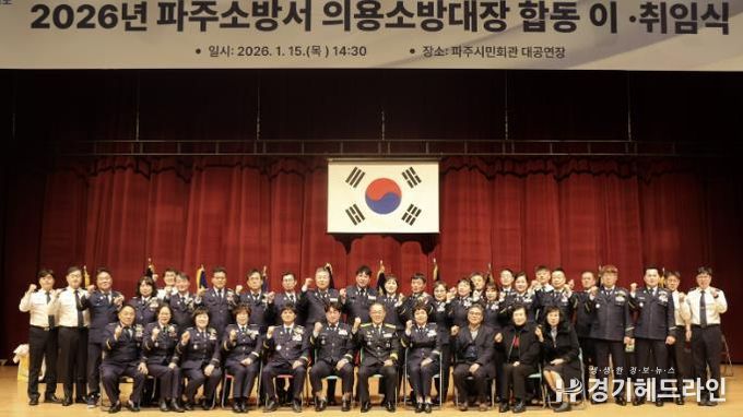[경기헤드라인=김홍량 기자] 파주소방서는 1월 15일 파주시민회관 대공연장에서 『2026년 파주소방서 의용소방대 대장 합동 이·취임식』을 열고, 지역 안전을 위해 헌신해온 이임 대장들의 공로에 감사를 전하는 한편, 새로운 리더들과 함께 ‘의용’의 사명을 이어갈 뜻을 다졌다.