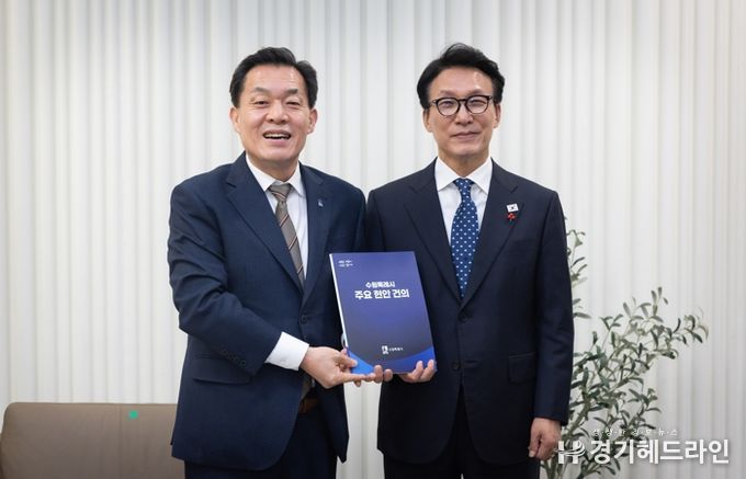 [경기헤드라인=문수철 기자] 이재준 수원특례시장이 김민석 국무총리에게 수원의 미래 성장 기반 구축을 위한 핵심 현안이 실현될 수 있도록 정부 차원에서 적극적으로 지원해 달라고 건의했다.