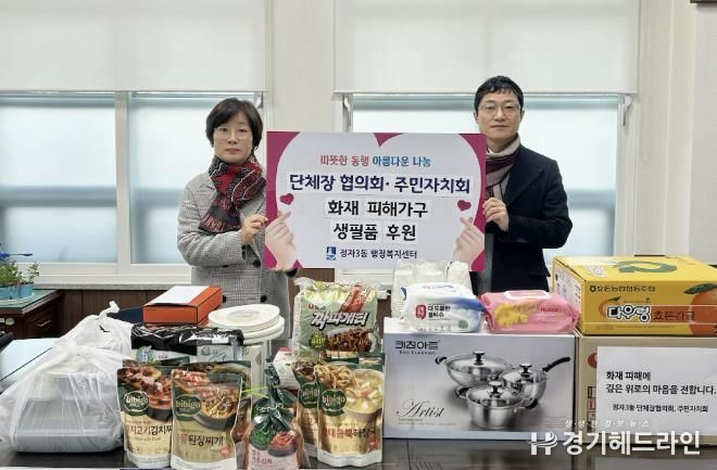 [경기헤드라인=문수철 기자] 장안구 정자3동 주민들이 지난 13일 발생한 관내 아파트 화재 피해 가구를 돕기 위한 나눔에 참여해 온정을 전달했다.