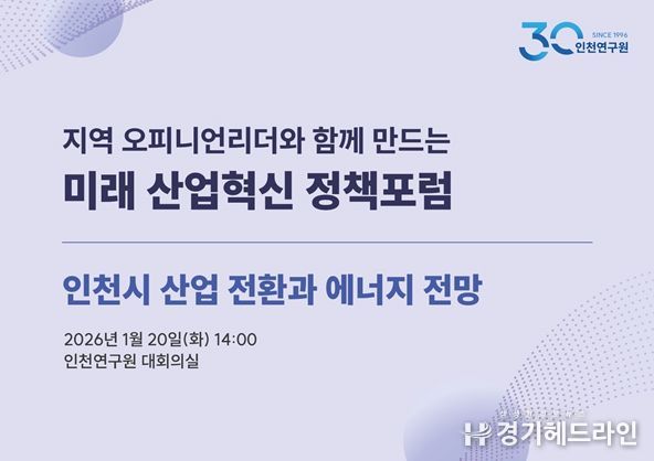 [경기헤드라인=문수철 기자] 인천연구원은 2026년 1월 20일 오후 2시, 연구원 대회의실에서 '2026년 제1차 인천 미래 산업혁신 정책포럼'을 개최한다.