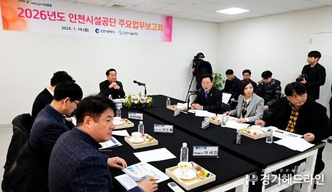 [경기헤드라인=문수철 기자] 인천광역시는 1월 19일 청소년수련관에서 인천시설공단의 2026년도 주요 업무계획과 현안 사항을 공유하고, 애로사항을 청취하는 등 현장 소통의 시간을 가졌다.
