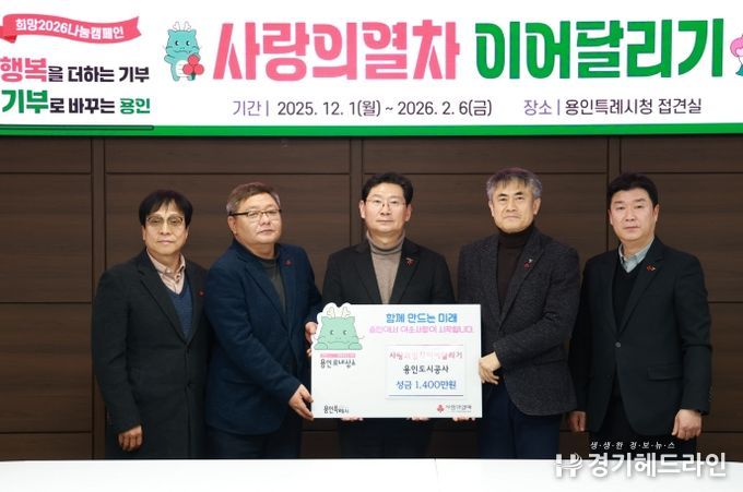 [경기헤드라인=문수철 기자] 용인도시공사는 19일 ‘노사합동 사랑의열차 이어달리기’ 성금 1,400만원을 용인특례시에 기탁했다.