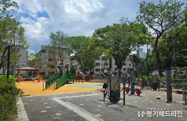 먼저 ‘군마근린공원’은 조성 이후 10년 이상 경과하며 시설 노후와 이용 불편이 이어진 가운데, 2023년 도시숲 리모델링을 통해 기능을 재정비했다. 휴게쉼터 조성과 수목 식재, 레인가든 및 경관형 수경시설 설치 등 녹지 요소를 보완해 도심 속에서 휴식과 여가를 누릴 수 있는 공간으로 활용도를 높였다. 경원선과 국도, 주거지가 인접한 입지를 고려해 녹지를 확충하고 소음 완화 기능을 강화한 점도 특징이다.
