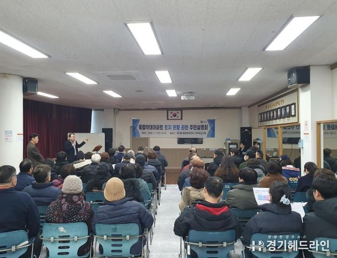 [경기헤드라인=문수철 기자] 부천시는 지난 17일 약대동 행정복지센터에서 흥립약대아파트 주민을 대상으로 토지 지분 현황과 현대건설의 기부채납 관련 사항을 안내하는 주민설명회를 열었다.