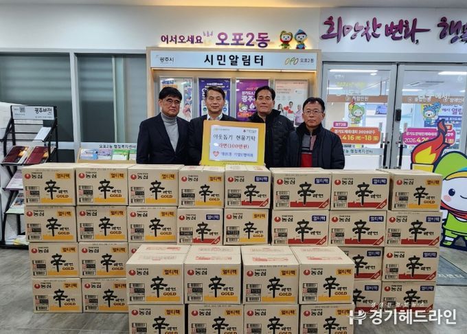 [경기헤드라인=정현수 기자] 광주시 매산1통 기업인협의회는 20일 오포2동 행정복지센터를 방문해 100만 원 상당의 라면을 기탁하며 지역사회 나눔을 실천했다.