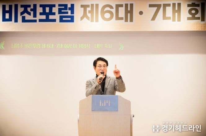 [경기헤드라인=문수철 기자] 조성대 남양주시의회 의장은 20일 금곡양정행정복지센터 6층 공연장에서 열린 남양주비전포럼 회장 이‧취임식에 참석해 관계자들에게 축하의 인사를 전하고 남양주 발전을 저해하는 중첩규제 폐지를 위한 노력에 동참해 줄 것을 당부했다.