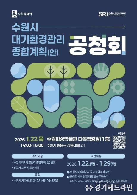공청회는 수원시 대기환경관리 종합계획(안) 발표로 시작해 전문가 토론, 질의·의견 청취 순으로 진행된다.
