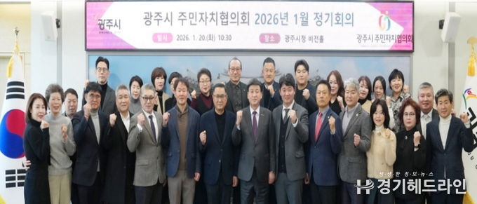 [경기헤드라인=정현수 기자] 광주시는 지난 20일 시청 비전홀에서 읍면동 주민자치위원장, 회장, 사무국장 등이 참석한 가운데 ‘광주시 주민자치협의회 2026년 1월 정기회의’를 열고 제10대 광주시 주민자치협의회를 이끌 협의회장과 임원을 선출했다.