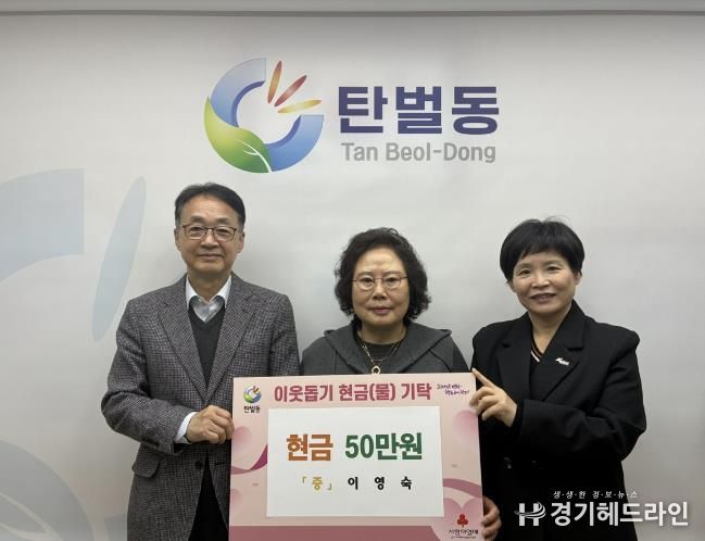 [경기헤드라인=정현수 기자] 이영숙 탄벌8통장은 21일 광주시 탄벌동 행정복지센터를 방문해 취약계층 지원을 위한 성금 50만 원을 기탁했다.
