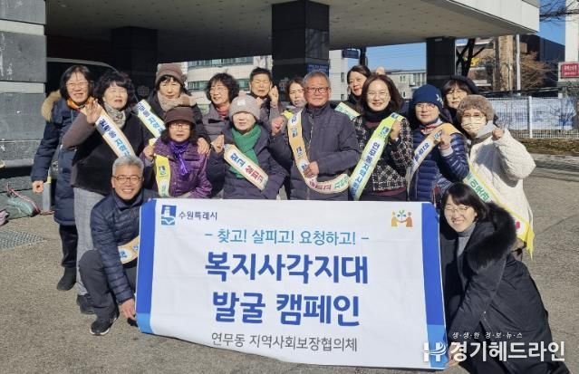 [경기헤드라인=문수철 기자] 수원시 장안구 연무동 지역사회보장협의체는 지난 21일 연무시장 거리에서 '복지사각지대 발굴 캠페인'을 진행했다.
